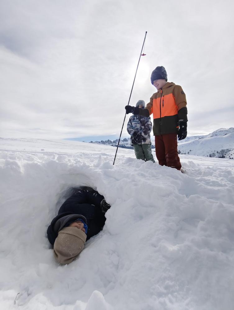 Mir hat der Ausflug sehr gut gefallen das Beste war, wo wir den Rucksack vergraben mussten und mit Pieps, Sonde und Schaufel retten mussten. Weniger cool war, dass das Wetter nicht schön war und es sehr kalt war. Ich habe mir gemerkt, dass es wichtig ist nicht allein im Gelände zu fahren und dass es 5 verschiedene Stufen gibt. (M.V.)